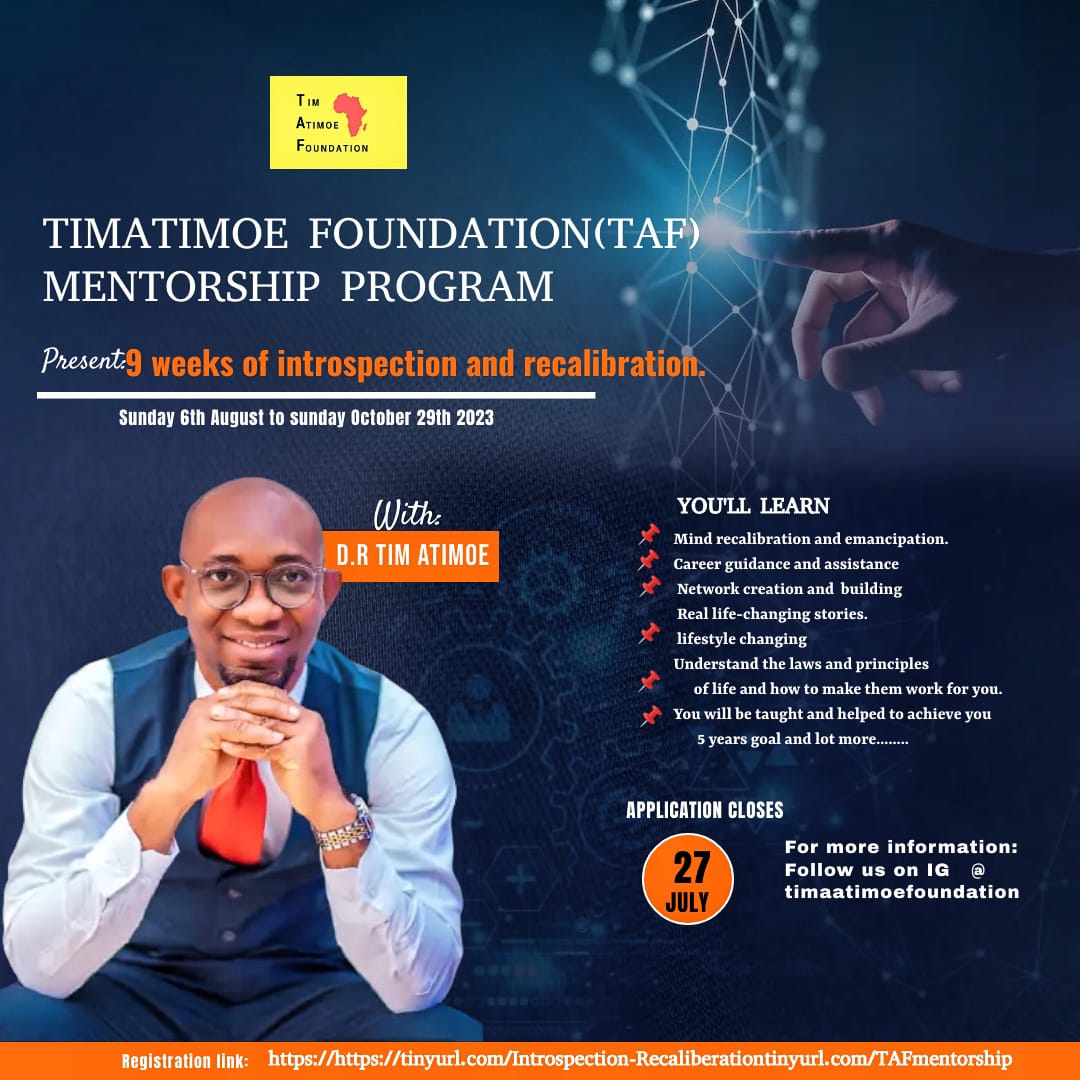 A 9 weeks mentorship session for students and professional where participants were equipped with mind recalibration strategies, career and self leadership enhancement Entrepreneurship skill and life-coping skills.